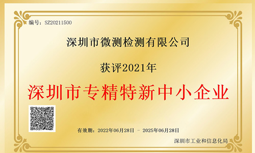 喜訊|微測檢測獲評 “2021年深圳市專精特新中小企業(yè)” 認(rèn)定
